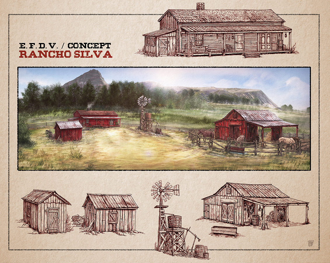 RANCHO SILVA (concept art) Extraña forma de vida (Strange way of life) Spain / 2023 Director: Pedro Almodóvar Production Designer: Antxón Gómez Art Director: Clara Notari Production Co.: El Deseo