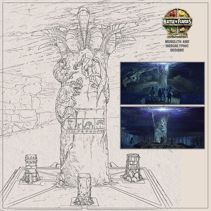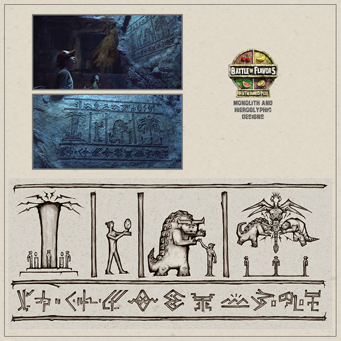 Concept Art Monolith and hieroglyph designs FANTA – Battle of Flavors Production Co.: Blur Films Director: Marcelo Burgos Ads – 2020 Concept Art, Character Design & Storyboards.