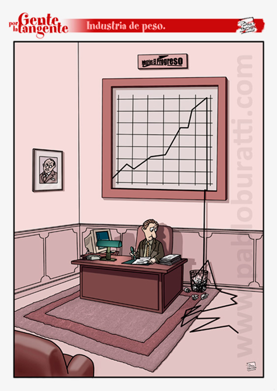 “Gente por la tangente” Humor Gráfico Dinero: Industria de peso / 2004 Globito feliz / 2004 Graphic humor / Personal portfolio.