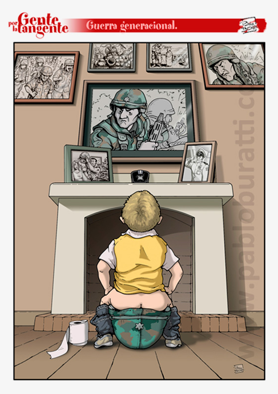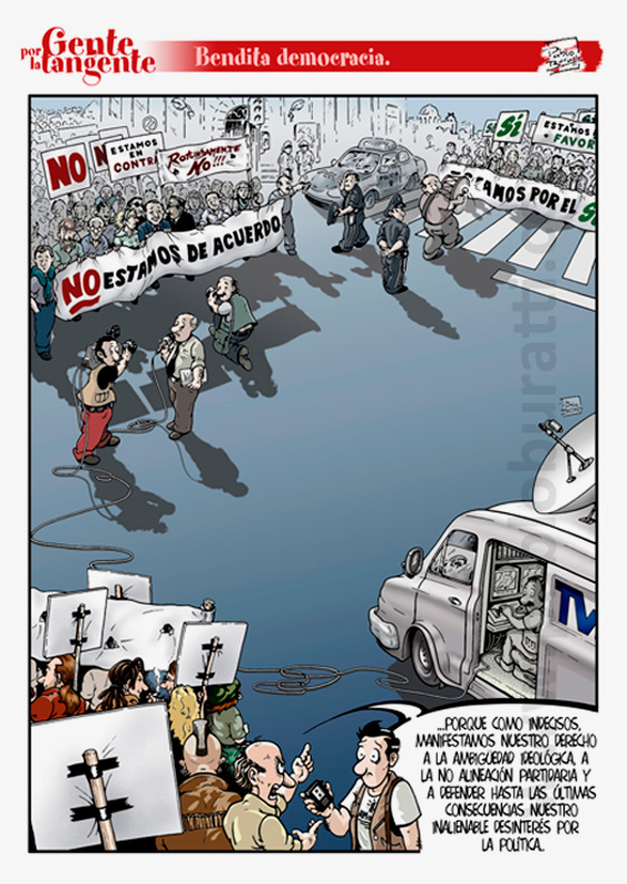 “Gente por la tangente” Humor Gráfico Instituciones: Guerra generacional / 2004 Bendita democracia / 2004 Graphic humor / Personal portfolio.