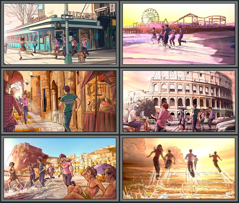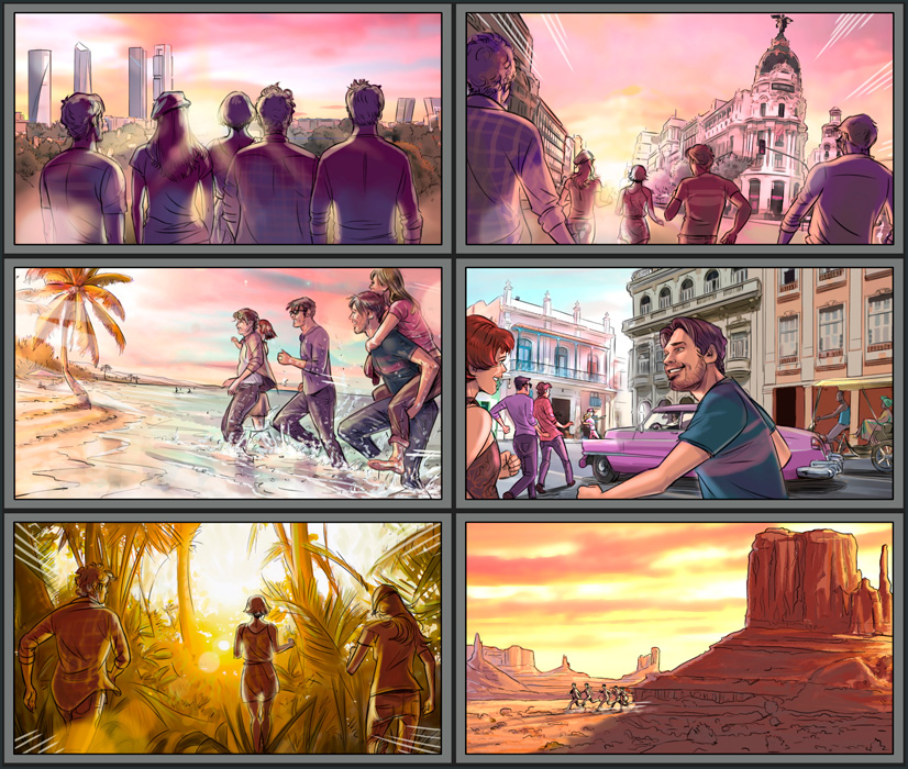 Storyboards for audiovisual campaign.