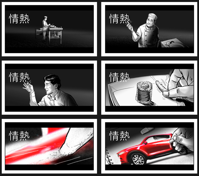 Mister Directed by Sega Ads – 2017 Storyboards for audiovisual campaign. *Sketching the car for shooting and acting as a hand-double for close-up shots.