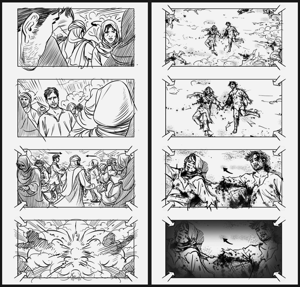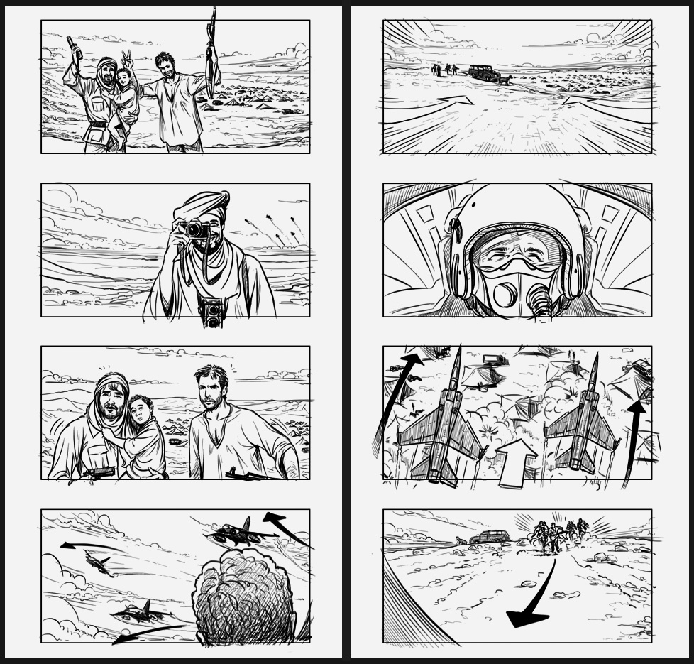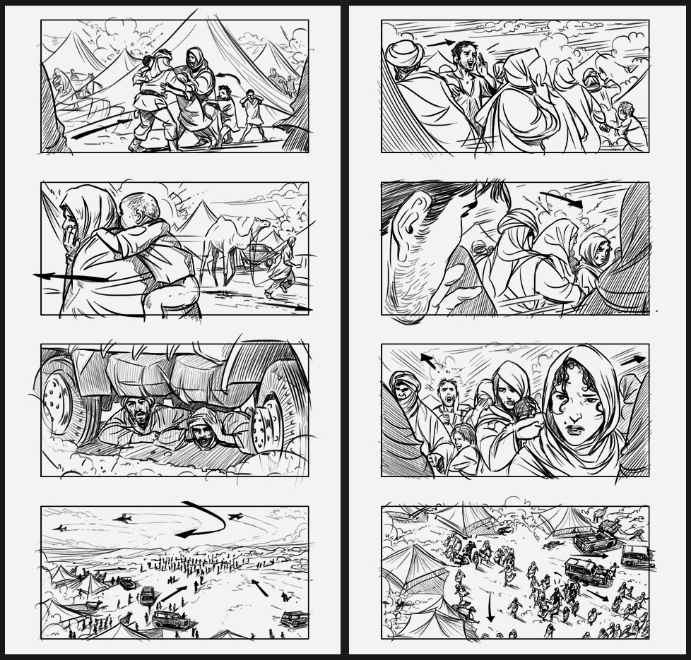 Storyboards included in the production dossier.